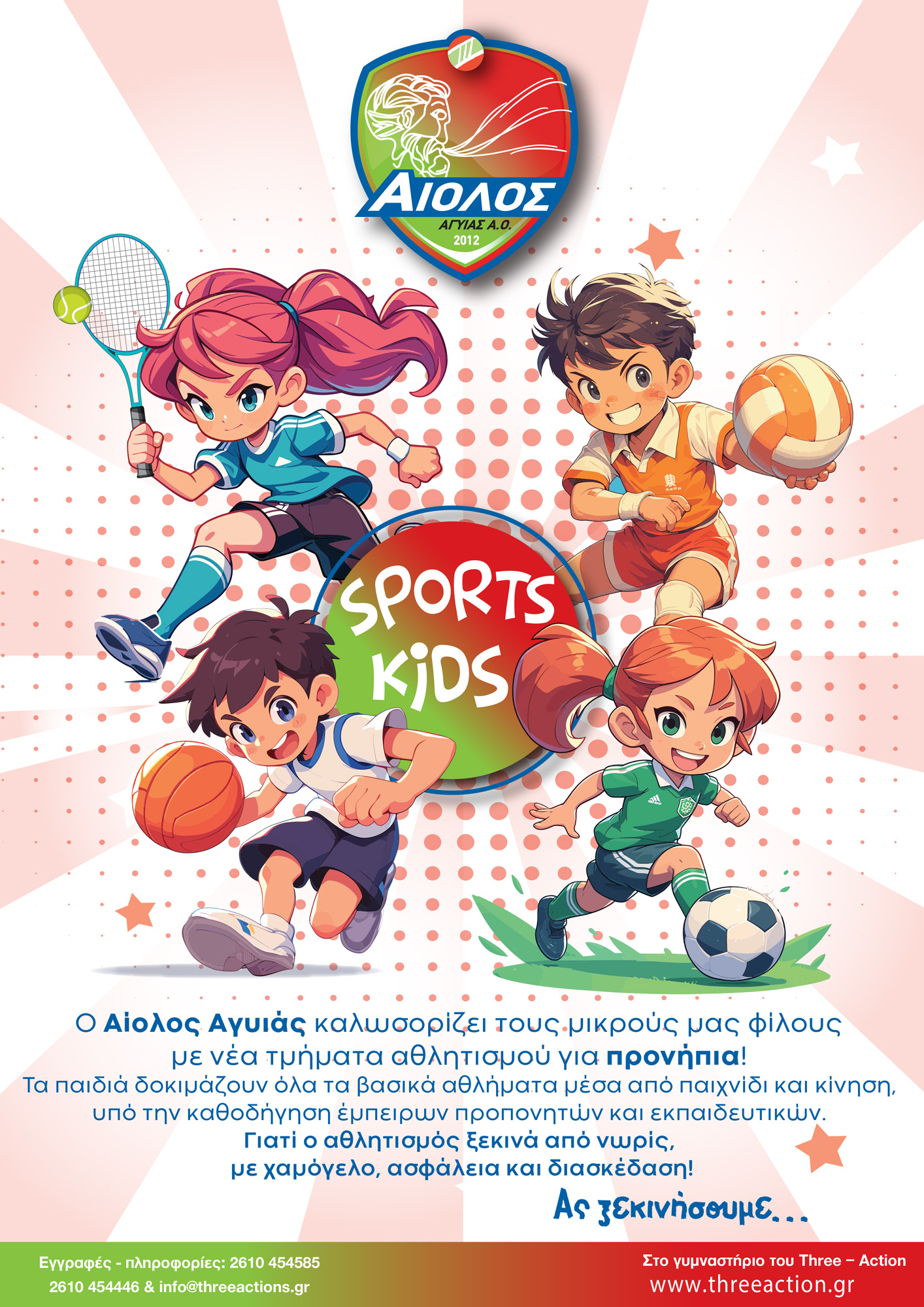 Το Sports Kids απευθύνεται σε προνήπια (Γεν. 2021) και στόχος του είναι να ενισχύσει τη φυσική και ψυχοσυναισθηματική ανάπτυξη των παιδιών μέσω της κίνησης, του παιχνιδιού και της συνεργασίας. Το πρόγραμμα βασίζεται στις αρχές της ψυχοκινητικής αγωγής, οι οποίες —ειδικά στις μικρές ηλικίες— συνδέουν τον ψυχισμό με την κίνηση, συμβάλλοντας ουσιαστικά στην αυτοπεποίθηση, την κοινωνικότητα και την αυτονομία των παιδιών. Το πλάνο σχεδιάστηκε και υλοποιείται από έμπειρους προπονητές και παιδαγωγούς, σε ασφαλές αθλητικό περιβάλλον.